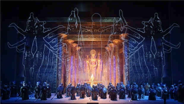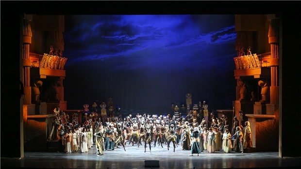 第一幕第二場,拉達(dá)梅斯的“浪漫曲”。威爾第在《阿依達(dá)》的音樂段落名稱中沒有使用Aria(詠嘆調(diào))這一傳統(tǒng)稱謂,而是用Romance(浪漫曲)來稱呼男女主角的獨(dú)唱段落。在18世紀(jì)末19世紀(jì)初的歐洲歌劇中,“浪漫曲”通常所指的是規(guī)模比詠嘆調(diào)小,速度舒緩的獨(dú)唱段落。而《阿依達(dá)》中的三段浪漫曲,無論規(guī)模還是內(nèi)容,其實(shí)都是典型的“詠嘆調(diào)”。