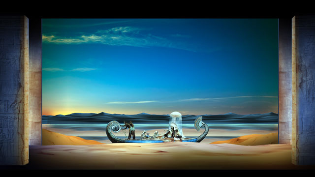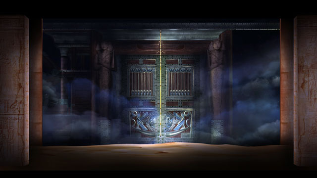 第四幕,第四場。阿依達(dá)與拉達(dá)梅斯殉情的二重唱。盡管他們是被判決活埋處死的,但這也是他們在面臨忠貞考驗(yàn)時(shí)決然的自我選擇。死亡對于這一對注定無法終成眷屬的癡情男女而言,或許是別無選擇的解脫,也是浪漫主義時(shí)期悲劇作品最眾望所歸的結(jié)局。當(dāng)石墓的門被石磚封死,墓室里的氧氣迅速稀薄,兩個(gè)人的呼吸越發(fā)困難,但卻在平靜相擁之中完成了靈魂的結(jié)合與升華。威爾第的妙筆將這種生理上的痛苦與精神上愉悅?cè)诤显谝黄穑恳粋€(gè)向上飛升的樂句似乎都無力唱完,卻又完整的迸發(fā)著幸福感。這首二重唱與《弄臣》、《茶花女》最后的二重唱一樣,用充滿虔誠與幸福感的音樂,倍升悲劇性的結(jié)局的感染力。