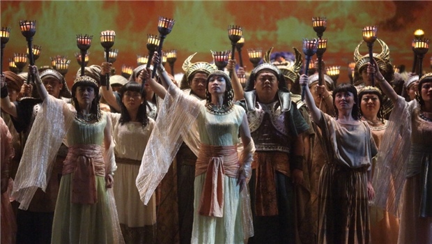 第一幕第六場,阿依達(dá)的浪漫曲。威爾第的歌劇經(jīng)常通過將戲中主角至于矛盾兩難的境遇中,來實(shí)現(xiàn)戲劇性沖突的效果。阿依達(dá)所愛的拉達(dá)梅斯即將出征與自己的父兄作戰(zhàn),愛情與親情無從選擇的糾結(jié),迸發(fā)出這首情感充沛而哀怨的詠嘆調(diào)。對于“戲劇性”女高音而言,大動(dòng)態(tài)的音量幅度與寬厚光澤的音色是基本的技術(shù)要求。而如何能夠在展現(xiàn)音樂情感的爆發(fā)、帶給聽眾足夠聲音滿足感的同時(shí),保持劇中人物優(yōu)雅高貴富于柔情的音樂形象,而不淪為大喊大叫的悍婦,這正是考驗(yàn)歌唱家技術(shù)能力與藝術(shù)修養(yǎng)之處。
