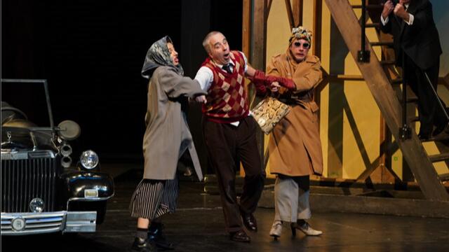 ??芭蕾喜劇是一種在戲劇行動(dòng)中穿插音樂(lè)、舞蹈的喜劇樣式?!兜隆て譅栛叛趴讼壬冯m然不是莫里哀最有名的作品,卻是芭蕾喜劇這一獨(dú)特戲劇體裁中最為完整成熟的一部。音樂(lè)和舞蹈貫穿整個(gè)劇情當(dāng)中,完美契合全劇瘋狂的喜劇節(jié)奏。演出一開(kāi)場(chǎng),法國(guó)繁盛古樂(lè)團(tuán)的小型樂(lè)隊(duì)在舞臺(tái)一側(cè)進(jìn)行演奏,隨后一段載歌載舞的小夜曲唱出愛(ài)的主題:“去吧,迷人的夜,用你罌粟的芬芳,浸染每一雙眼睛,讓這些可愛(ài)的地方,只留下愛(ài)的嬌子。你的昏暗和寧?kù)o,比最晴和的白晝更美麗,讓愛(ài)情也柔和甜蜜?!币粚?duì)相愛(ài)的情侶,朱莉小姐和情人艾拉斯特即將被迫分離,朱莉的父親為了一筆豐厚的聘禮決定將她嫁給來(lái)自利摩日的外鄉(xiāng)客——德·浦爾叟雅克先生。朱莉一籌莫展之際,艾拉斯特花錢雇來(lái)斯布里嘎尼和賴?yán)?,作為阻止這場(chǎng)包辦婚姻的謀士籌謀劃策。于是,德·浦爾叟雅克先生一到巴黎,立即成為兩人的獵物,被戲耍得團(tuán)團(tuán)轉(zhuǎn)。斯布里嘎尼先憑借自己的花言巧語(yǔ)贏得德·浦爾叟雅克的信任,故意引他到精神病診所接受醫(yī)生跟藥劑師的折磨。德·浦爾叟雅克好容易逃出了診所,來(lái)到巴黎街頭,卻不想又輕信人言,認(rèn)定朱莉是一個(gè)輕佻的女人。而另一方面,朱莉的父親也受到蠱惑,認(rèn)定德·浦爾叟雅克是吃了官司負(fù)債累累,來(lái)巴黎只是想來(lái)騙婚還債。而朱莉一反常態(tài)表明非德·浦爾叟雅克不嫁,而斯布里嘎尼和賴?yán)确謩e扮成鄉(xiāng)下婆娘,為證明自己是德·浦爾叟雅克先生的太太而打了起來(lái)。一連串的巧合環(huán)環(huán)相扣,雙方誤會(huì)不斷加深,德·浦爾叟雅克腦中一團(tuán)漿糊,不斷跌向深淵,這位來(lái)自小鎮(zhèn)的可憐人迷失在巴黎的街頭。最終如抓住救命稻草一般,在斯布里嘎尼的建議下打扮成女人,留下一句“永別了,這地方就這一位好人”后逃出巴黎。
