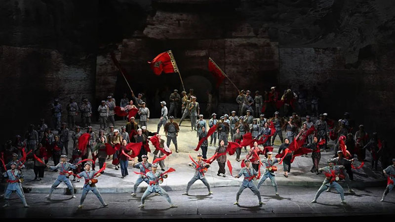 ??八十多年前長征的偉大勝利,堪稱歷史的奇跡。紅軍戰(zhàn)士不怕犧牲、堅定不移的革命理想信念,始終激勵著中華兒女前行的步伐。2016年,為紀念中國工農紅軍長征勝利80周年,國家大劇院力邀作曲家印青、劇作家鄒靜之、導演田沁鑫、楊笑陽等業(yè)內領軍藝術家組成創(chuàng)作團隊,歷時四年創(chuàng)作歌劇《長征》,用符合當代觀眾審美訴求的藝術手段,傳播紅色文化所獨有的精神價值。????