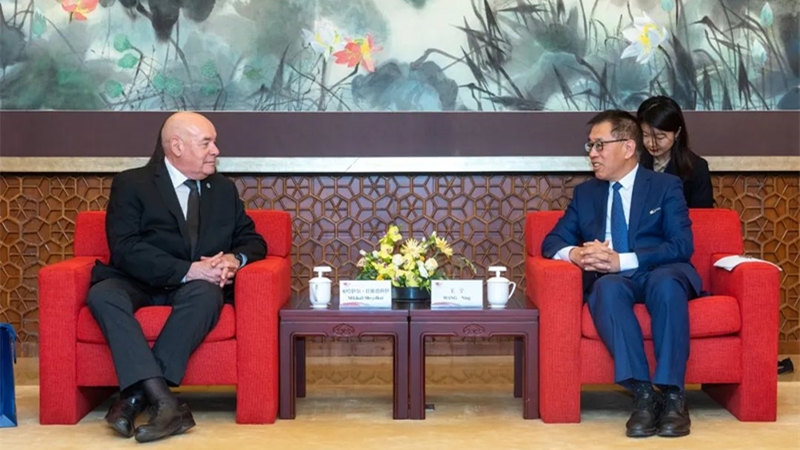 ??王寧歡迎施維特科伊一行訪問國家大劇院,表示今年中俄兩國領導人發(fā)表重要聯(lián)合聲明,明確提出,雙方將加強兩國博物館、圖書館、美術館、劇院等文化、文學、藝術機構交流交往。國家大劇院將繼續(xù)與莫斯科大劇院、馬林斯基劇院等機構攜手,在國際巡演、人員交流、國際論壇等方面加強合作,落實兩國元首聯(lián)合聲明,實現(xiàn)兩國表演藝術共同發(fā)展和繁榮,期待兩國的文化交往有更加美好的前景。