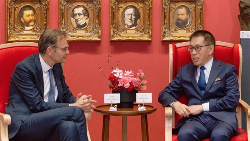 ??王寧院長(zhǎng)表示,中荷兩國(guó)文化資源豐富,不斷加強(qiáng)和推進(jìn)兩國(guó)在表演藝術(shù)領(lǐng)域的交流合作,將有助于促進(jìn)兩國(guó)文明交流互鑒,增進(jìn)兩國(guó)人民之間的友誼。國(guó)家大劇院自開幕以來(lái),就與荷蘭藝術(shù)家與藝術(shù)機(jī)構(gòu)保持密切的溝通,在商業(yè)演出、電影放映、國(guó)際論壇等方面取得了豐富合作成果。王寧院長(zhǎng)還介紹了國(guó)家大劇院“六大平臺(tái)”建設(shè),以及“一院三址”和世界劇院聯(lián)盟運(yùn)營(yíng)情況。希望在大使的大力支持下,在聯(lián)合制作、互訪演出、藝術(shù)展覽等方面取得更多合作成果,邀請(qǐng)荷蘭頂級(jí)藝術(shù)機(jī)構(gòu)加入世界劇院聯(lián)盟,向中國(guó)觀眾展示荷蘭文化的獨(dú)特魅力。